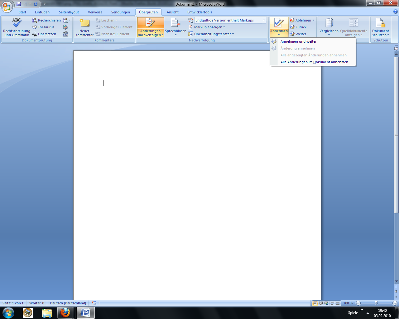 Erst auf "Alle Änderungen im Dokument annehmen" klicken, und dann ein Stück links daneben den Button "Änderungen nachverfolgen" (Direkt unter "Überprüfen") rausnehmen.