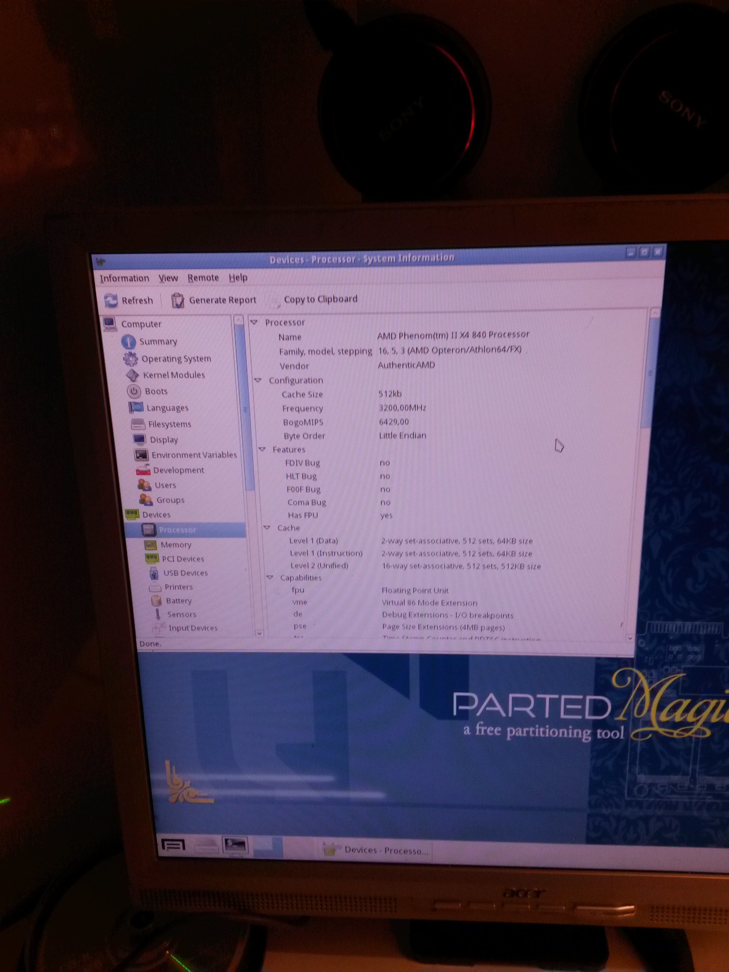 ich habe folgendes Problem mein Computer freezet oder startet neu bei Windows Installationen sowie das Ausführen von Betriebssystemen. Unter Linux steht "Kernel Panic" und "ECM Error" jetzt kommt aber das Phänomen ich habe Parted Magic auf mein RAM installiert über die UltimateBootCD und das läuft Firefox geht und das alles jetzt ist meine Frage warum geht über den RAM und alles andere Egal ob CD, Sata oder IDE gehen nur bis zu einem bestimmten Punkt ein Bekannter meint das kann sein das es mit der L2 Cache was zu tun haben kann :/