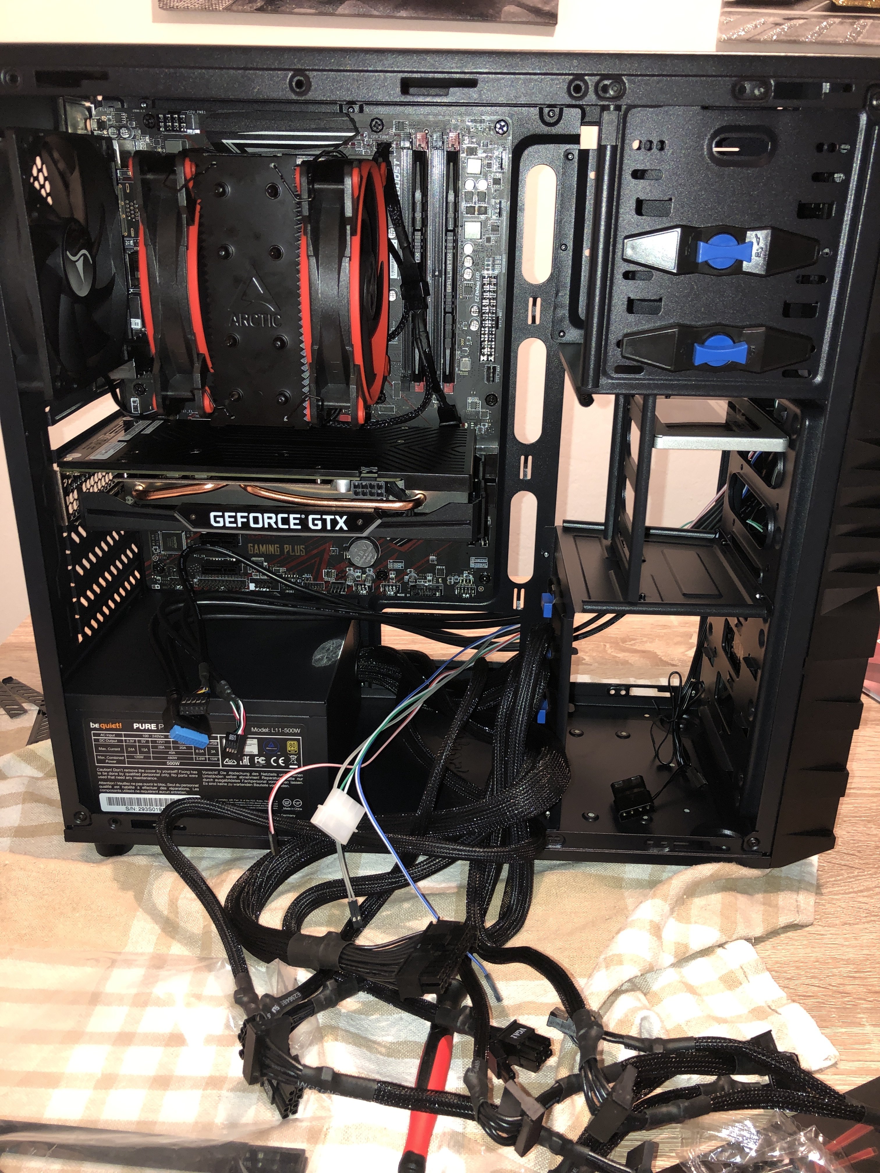 Das sind die einzigen Kabel die ich finden kann, außerhalb der Kabel des NetzteilsAnd so it begins...Mpiii schrieb:Hab alle Kabel zu mir raus.. Und jetzt bin ich überfordert. Im Handbuch des Motherboards steht zum Beispiel, dass ich mit Power LED + und Power LED - anfangen soll, Problem: die beiden Kabel finde ich nirgends?!