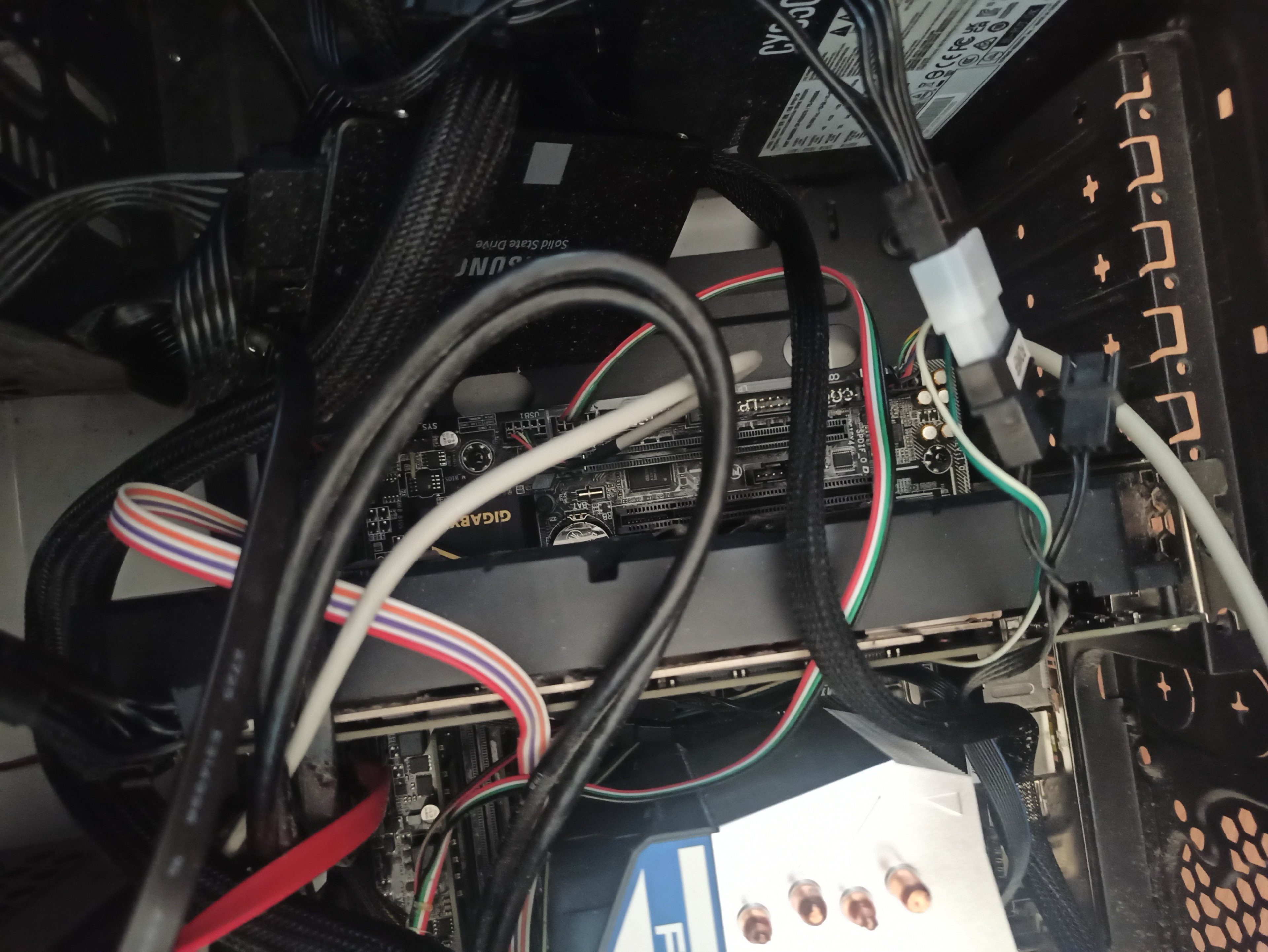 Seitdem kommt er nach dem Einschalten nicht mehr ins Bios, nur ein schwarzer Bildschirm. Kein Piepton. Die Gehäuselüfter und Grafikkartenlüfter drehen normal. Beleuchtung funktioniert auch.