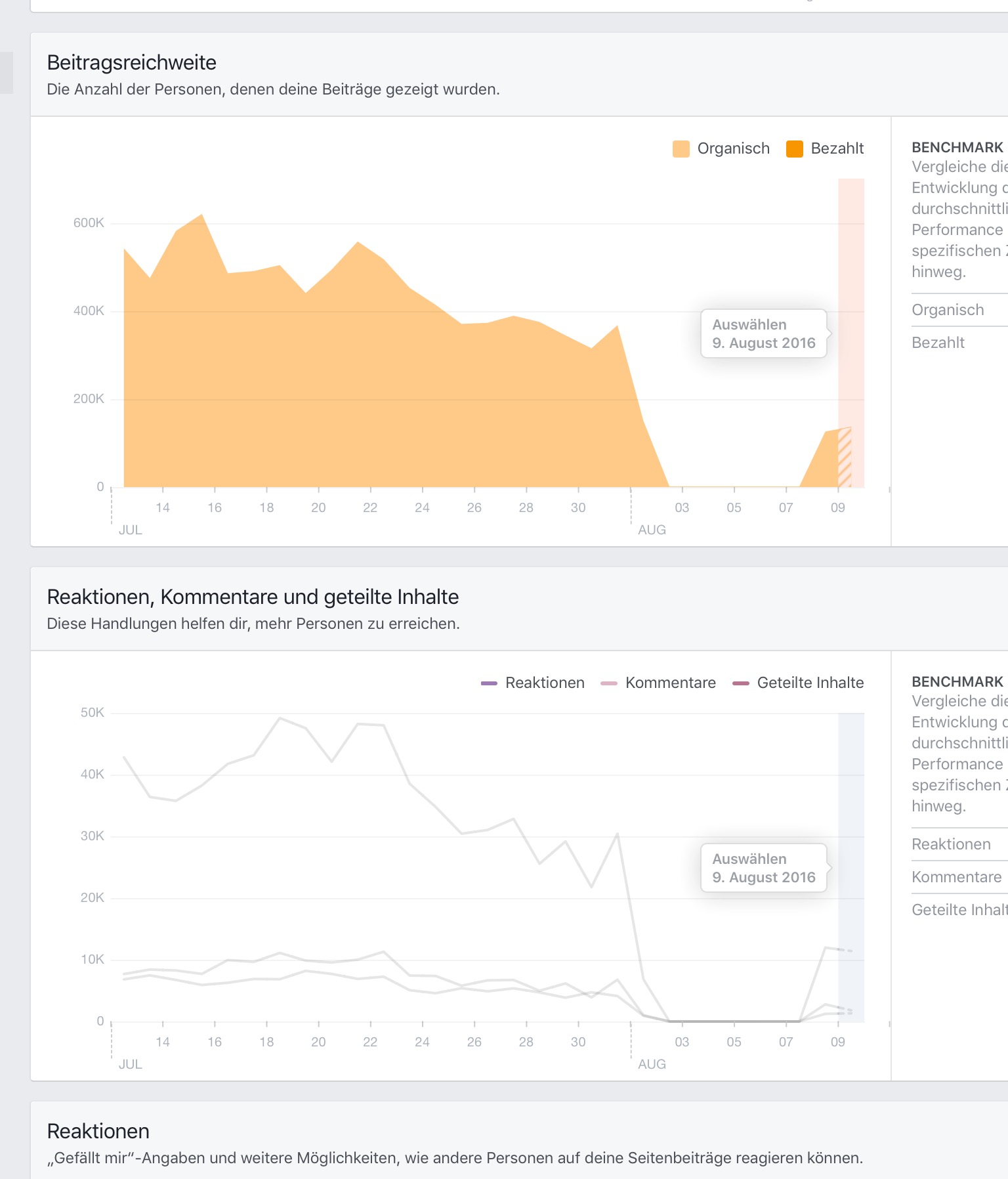 Facebook war auch so nett uns nach Sperrung eine Neueröffnung unter gleichem Namen zu ermöglichen. Alles gleich aber 360.000 organisch gewachsene Likes weniger.