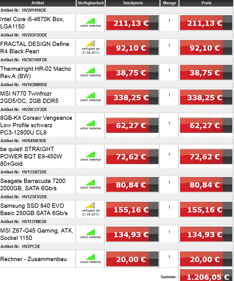 Mein Warenkorb sieht jetzt so aus, preislich auch absolut im Rahmen.