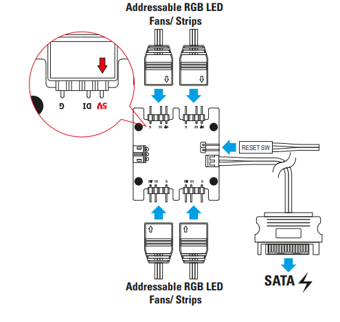 Mein Gedankengang ist folgender, da das Mainboard keinen 5v ARGB Header