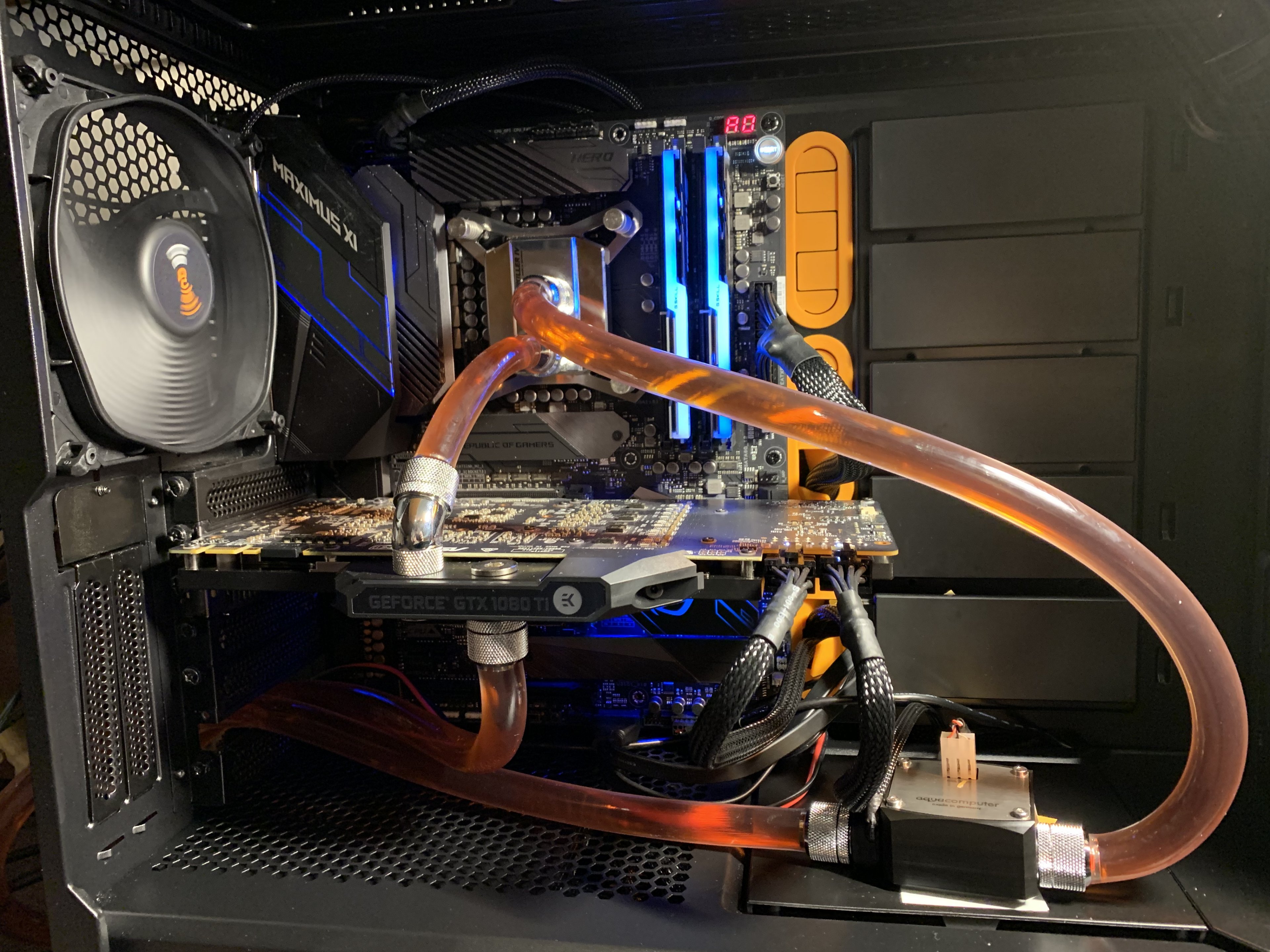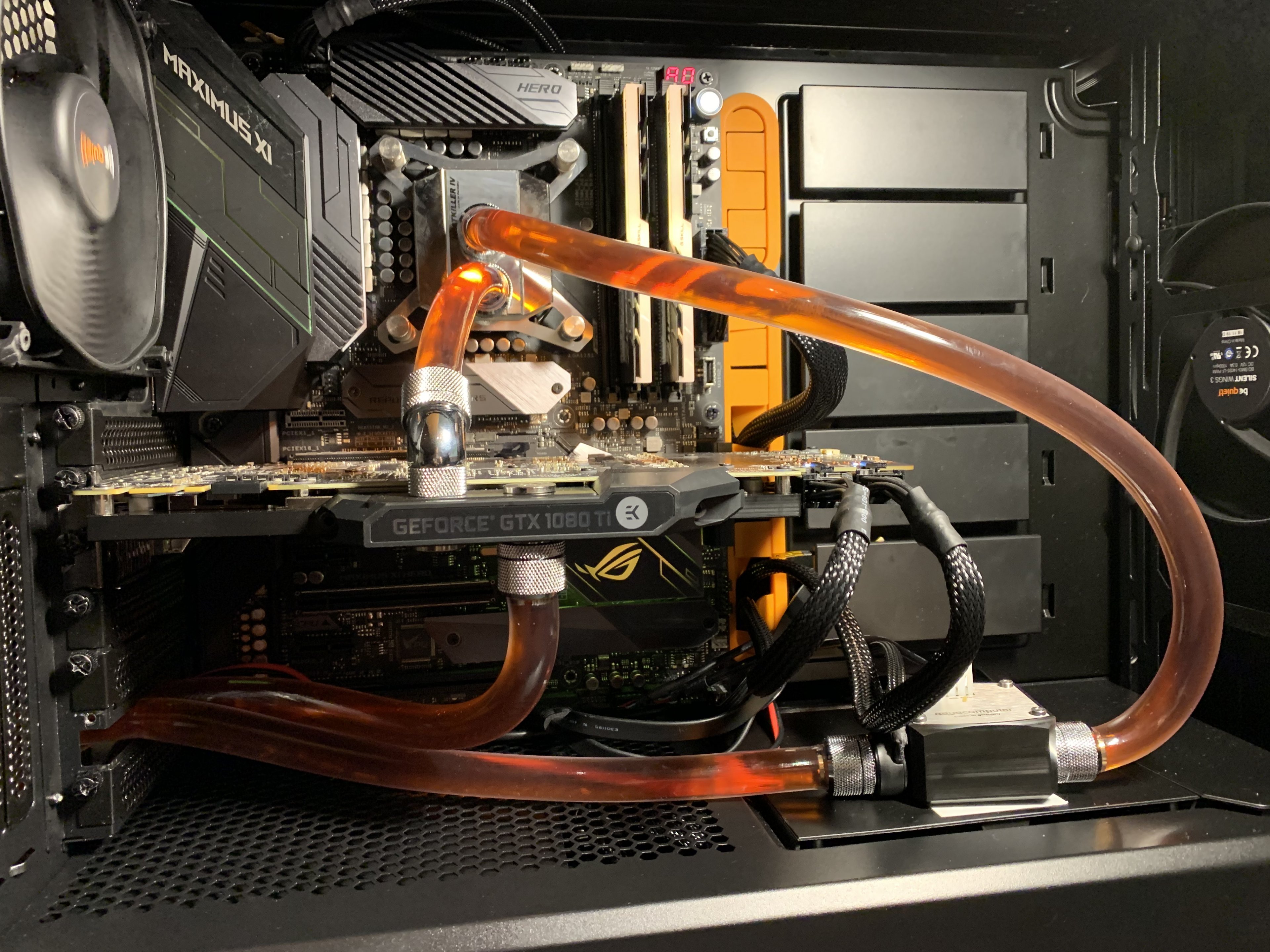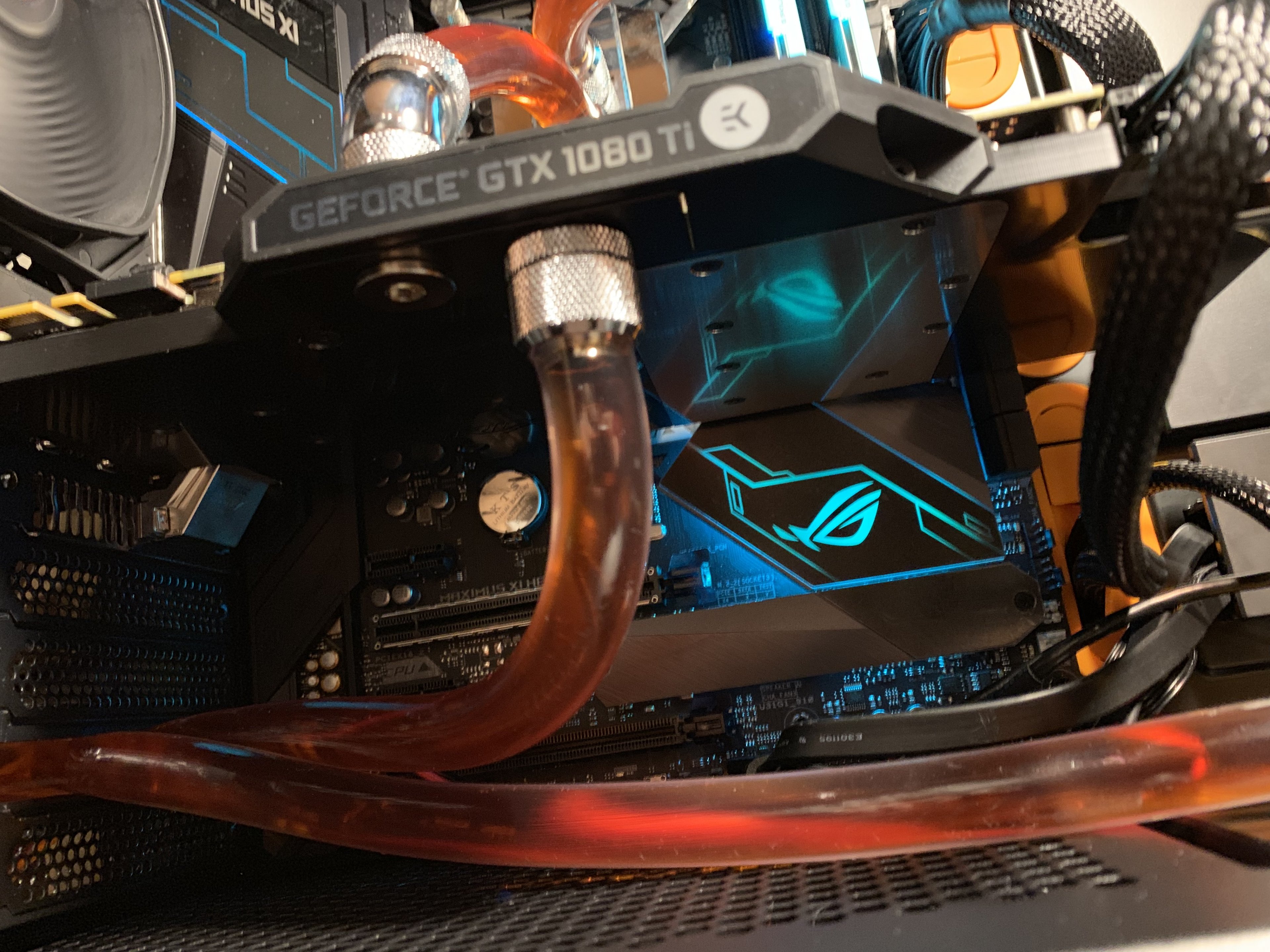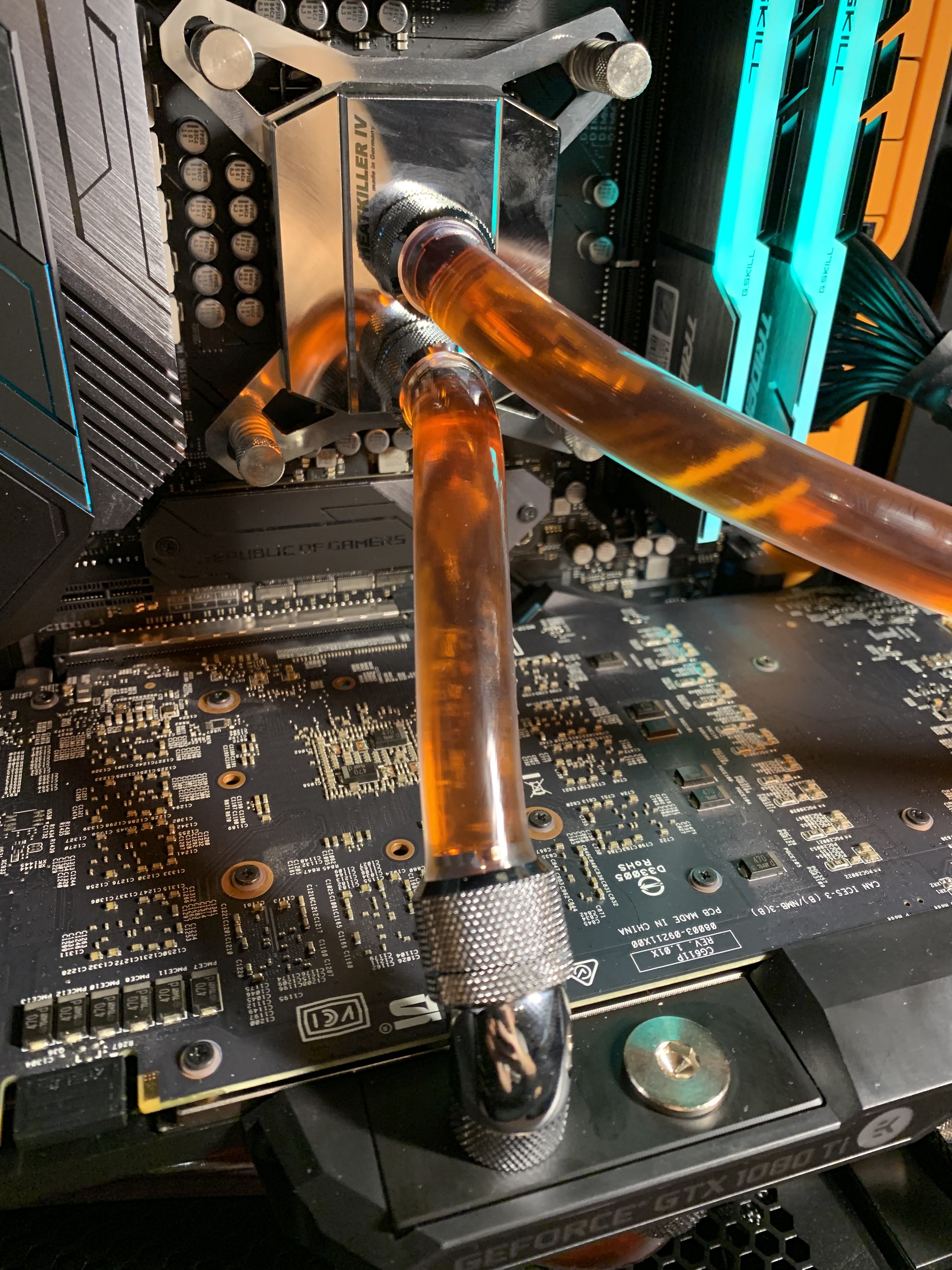 Den Schlauch der aus der Cpu raus geht so gut es geht parrallel zu dem anderen nach unten führen wenn Platz ist noch vor dem Anschlussterminal der Graka nach unten faktisch über das Ek Symbol der Graka drüber.