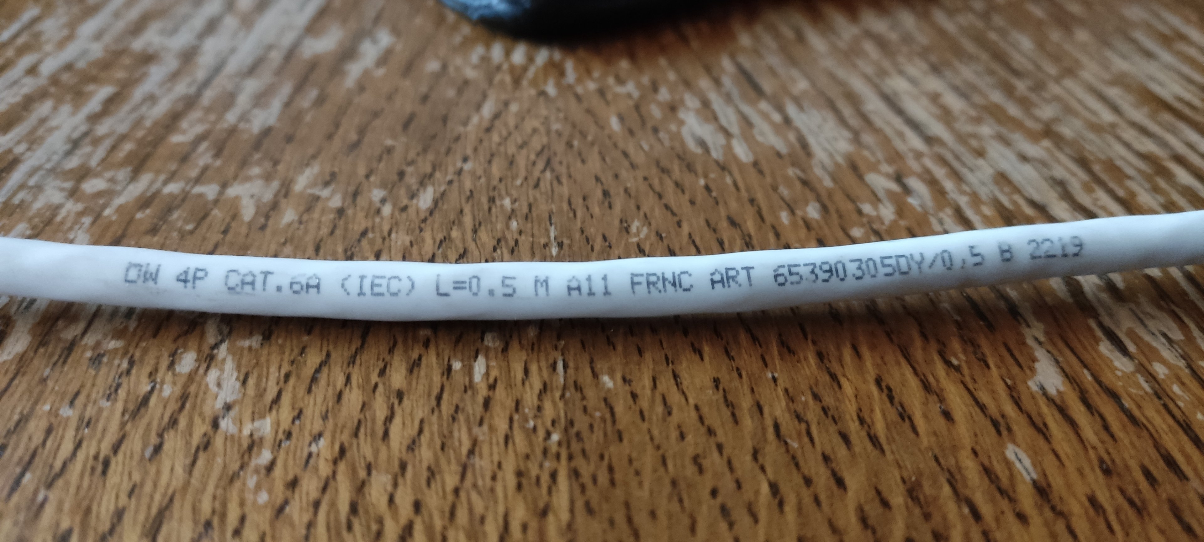 Hat jemand schon einmal solch ein "Patchkabel" gesehen? Das steckte zwischen ONT und Datendose im Keller. Das Kabel ist definitiv vom Elektroinstallateur. Falls man es auf dem vergrößerten Foto nicht erkennen kann: die Leiter sind allesamt EXAKT um 180° gedreht - also nicht wie gewöhnlich 1 auf 1, 2 auf 2, 3 auf 3 etc. sondern 1 auf 8, 2 auf 7, 3 auf 6 etc. - komplett vertauscht. Ein klassisches Crossover-Kabel hat auch nur ein paar Adern verdreht, das kann es also nicht sein.