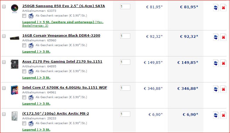 Hier meine Bestellung, um 18 Uhr geht diese heute raus wurde mir gesagt. Vieleicht kann jemand noch mal drüber schaun ob das so alles zusammen passt.