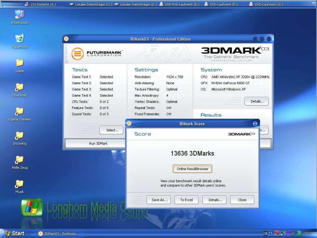 CPU: AMD Athlon XP 3200+@2222Mhz 512kb L2 Cache