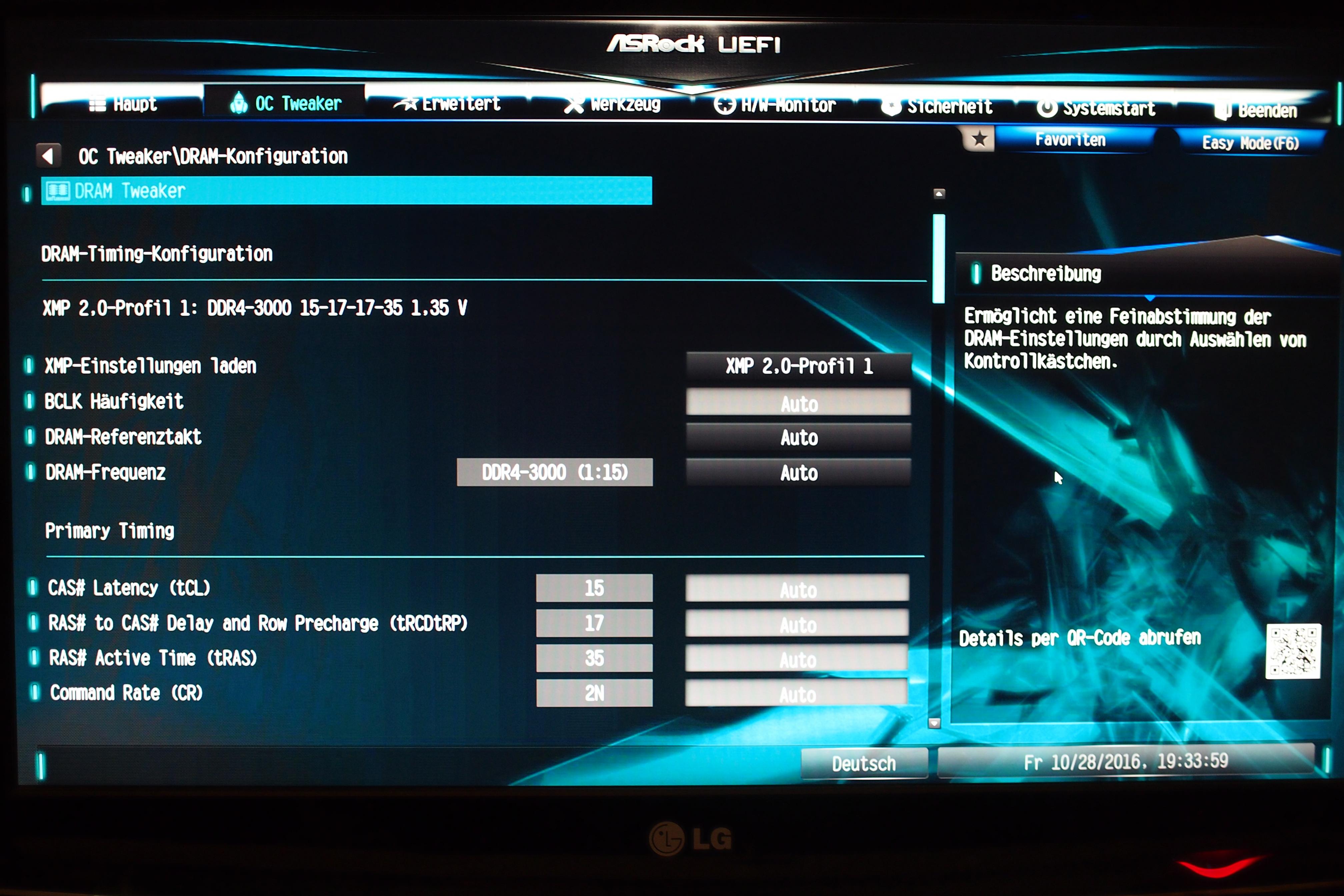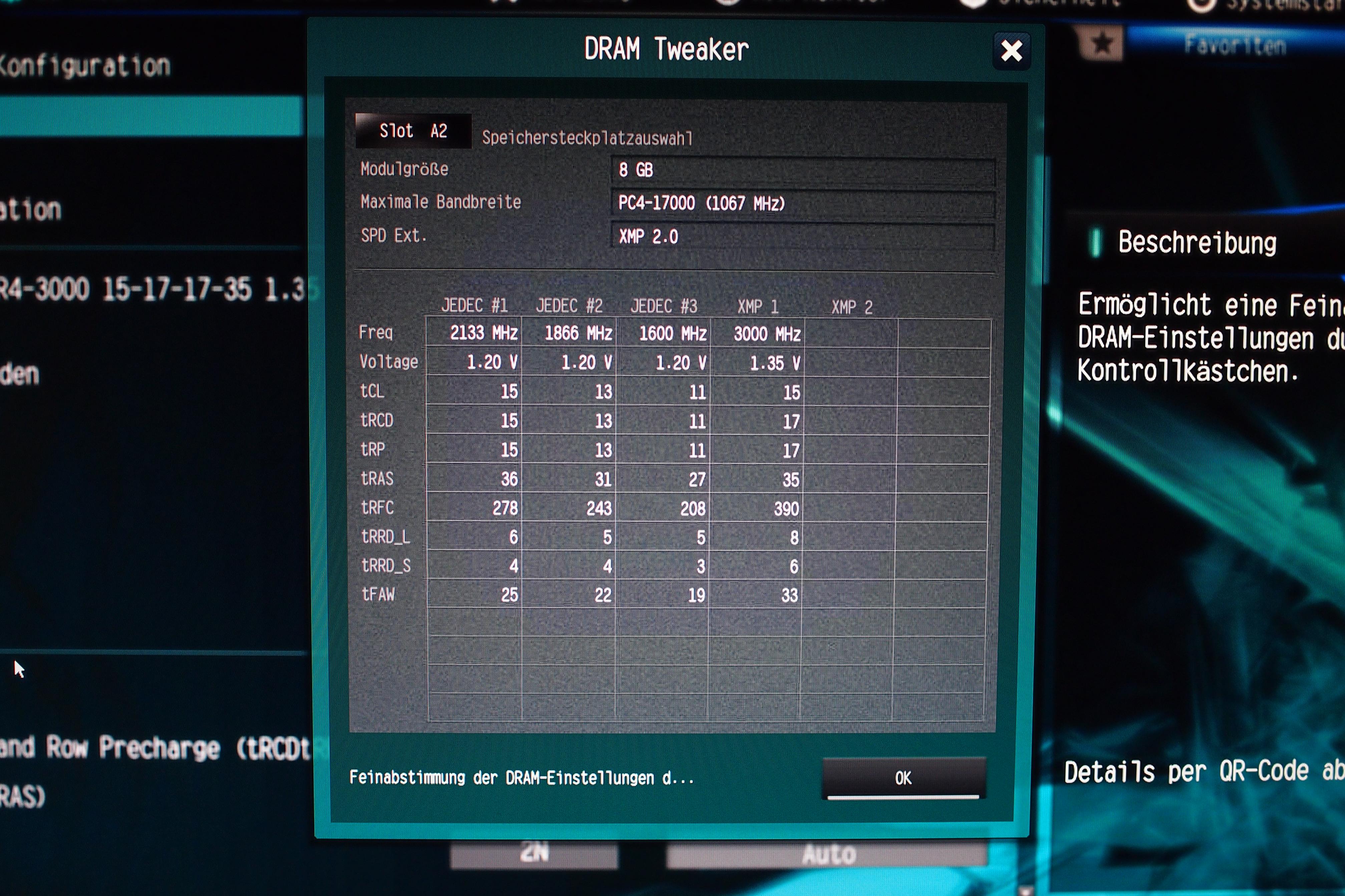Screenshot vom EUFI ist anbei. Kann beim XMP-Profil nur zwischen Standard und Profil1 wechseln. Kann es denn sein, dass das MB den RAM gar nicht unterstützt? In der Support-Liste kommt mein RAM gar nicht vor?!? Laut CPU-Z = CMK16GX4M2B3000C15