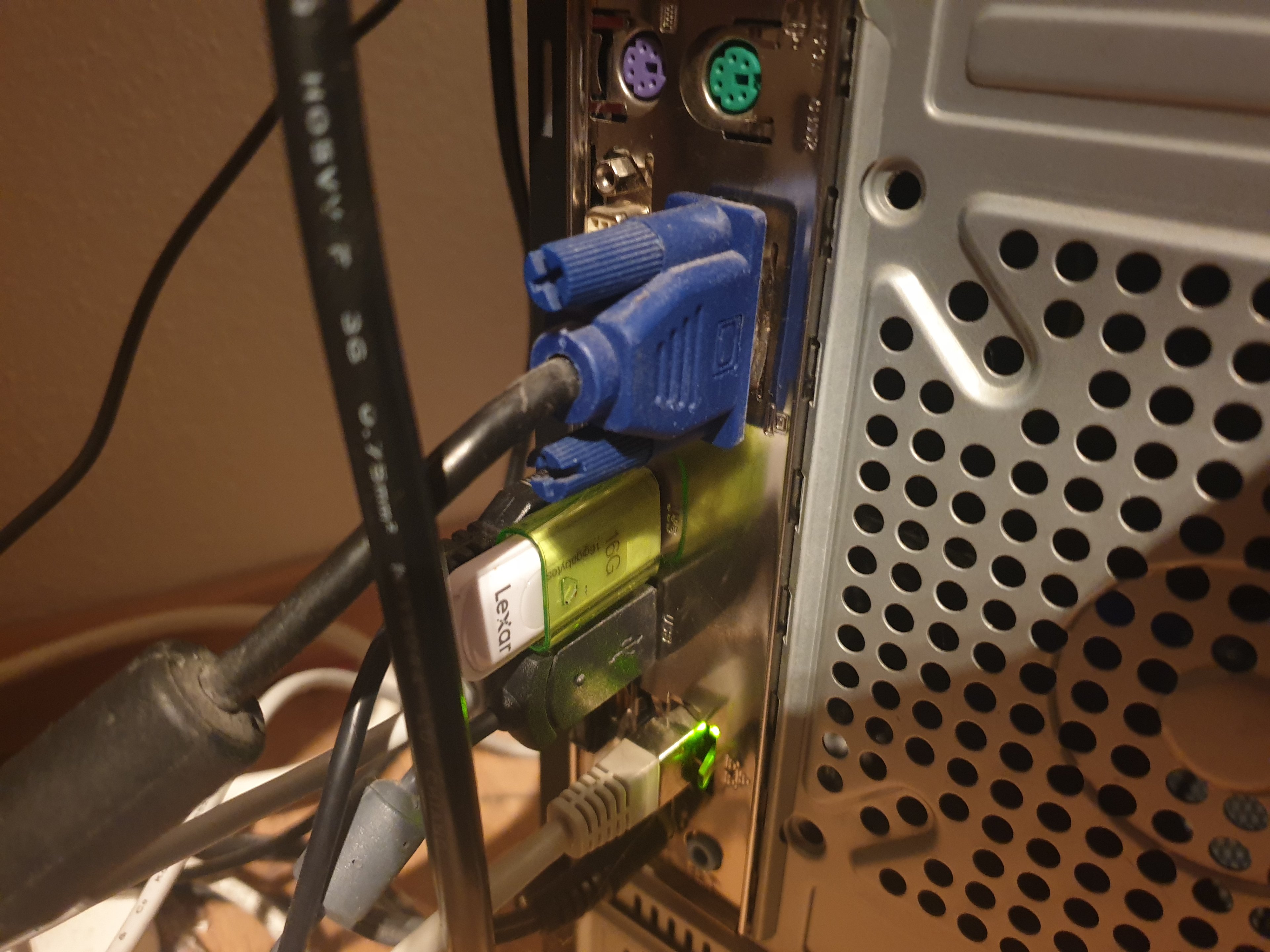 Hier ist ein Bild von den Anschlüssen und meinem aktuellen PC.