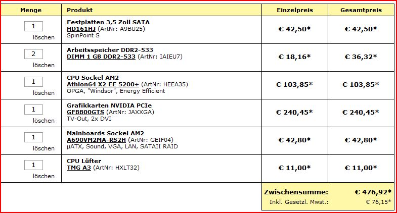 Als Grafikkarte wollte ich mir die Geforce 8800GT holen oder vielleicht eine mit RV670-Chip.