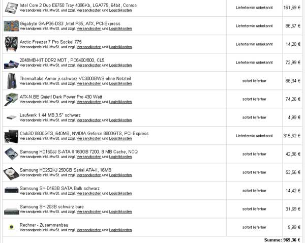 Wir haben bei ALTERNATE einen Komplett-PC gesehen, Preis: 949,- €