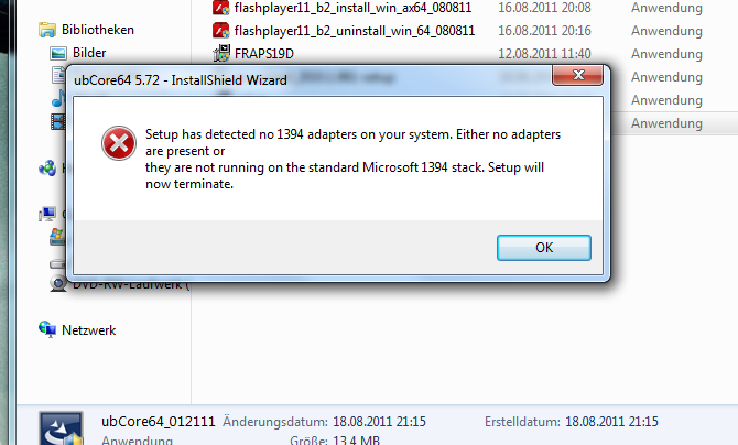 Heute hab ich im Geräte-Manager unter Andere Geräte-Unibrain 1394 PC einen Konflikt gefunden. Unibrain driver / OHCI Compatible Board Treiber fehlen oder beschädigt.