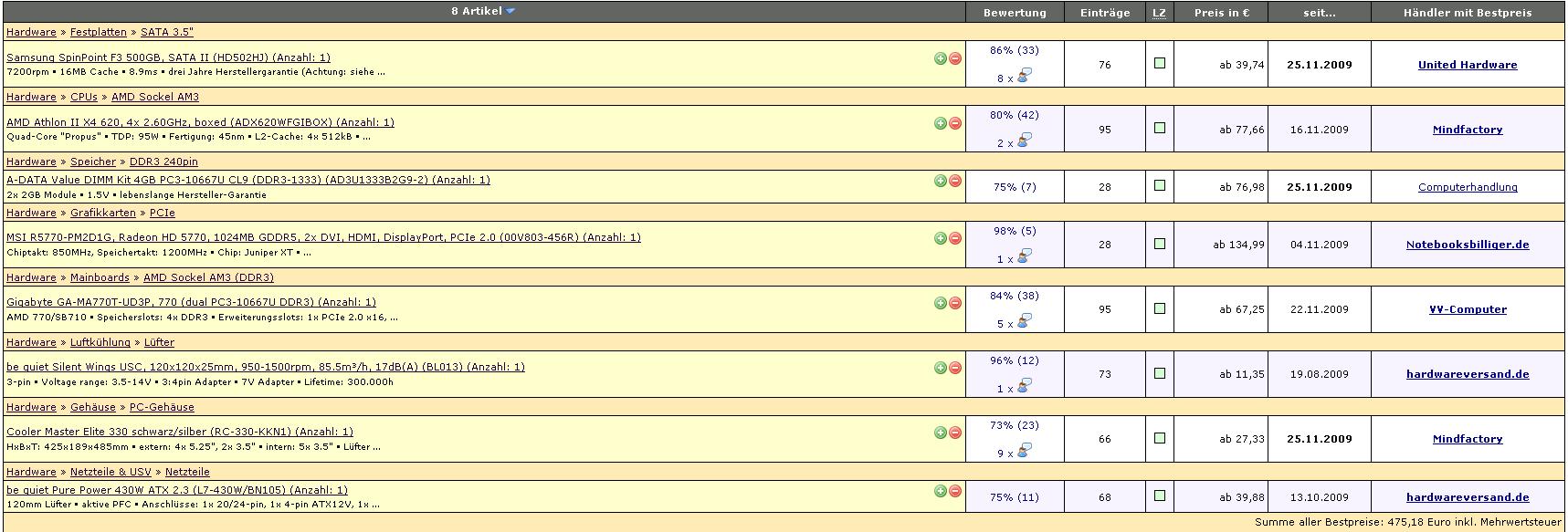 Festplattenspeicher: Inklusive 500GB Samsung SpinPoint F1