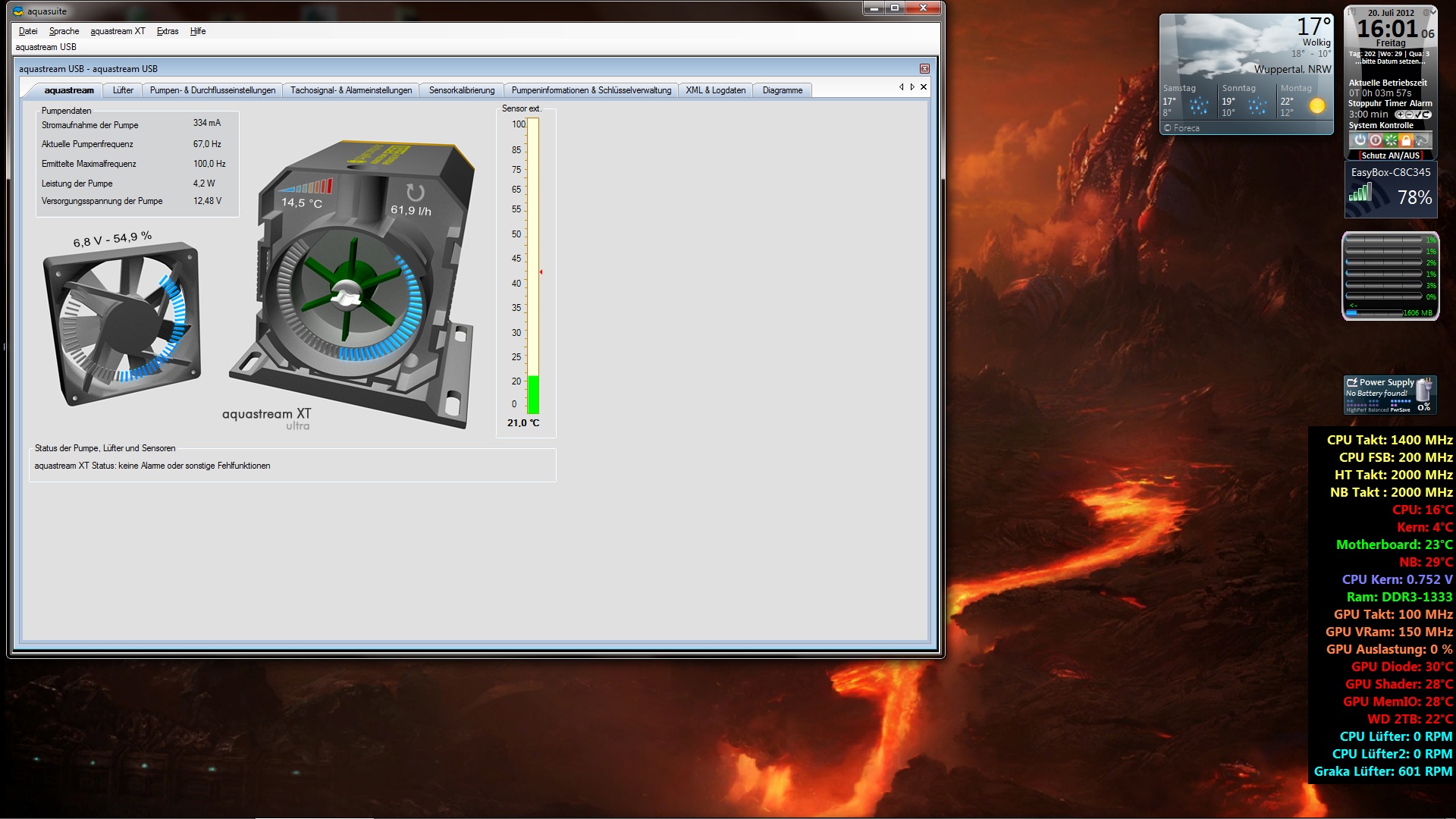 Auch wenn JohnDoe recht hat mit der Aussage das eine Wasserkühlung bei höheren Wassertemperaturen effizienter arbeitet, so hat das aber nicht wirklich was mit der besseren Wärmeleitfähigkeit von warmem Wasser zu tun. Eher ist dafür die dann größere Differenz zwischen Wassertemperatur, und Lufttemperatur am Radiator verantwortlich.