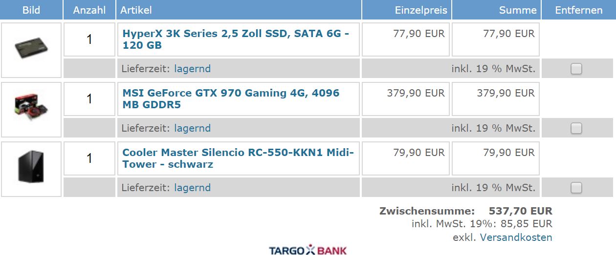 Unten stehende Komponenten habe ich mir ausgesucht:
