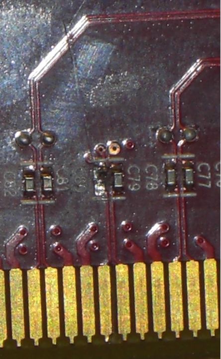 Dabei bin ich mit dem Schraubenzieher abgerutscht und ein Kondensator, oder wie man das Ding nennt, ist dabei and der Kontaktleiste abgebrochen.