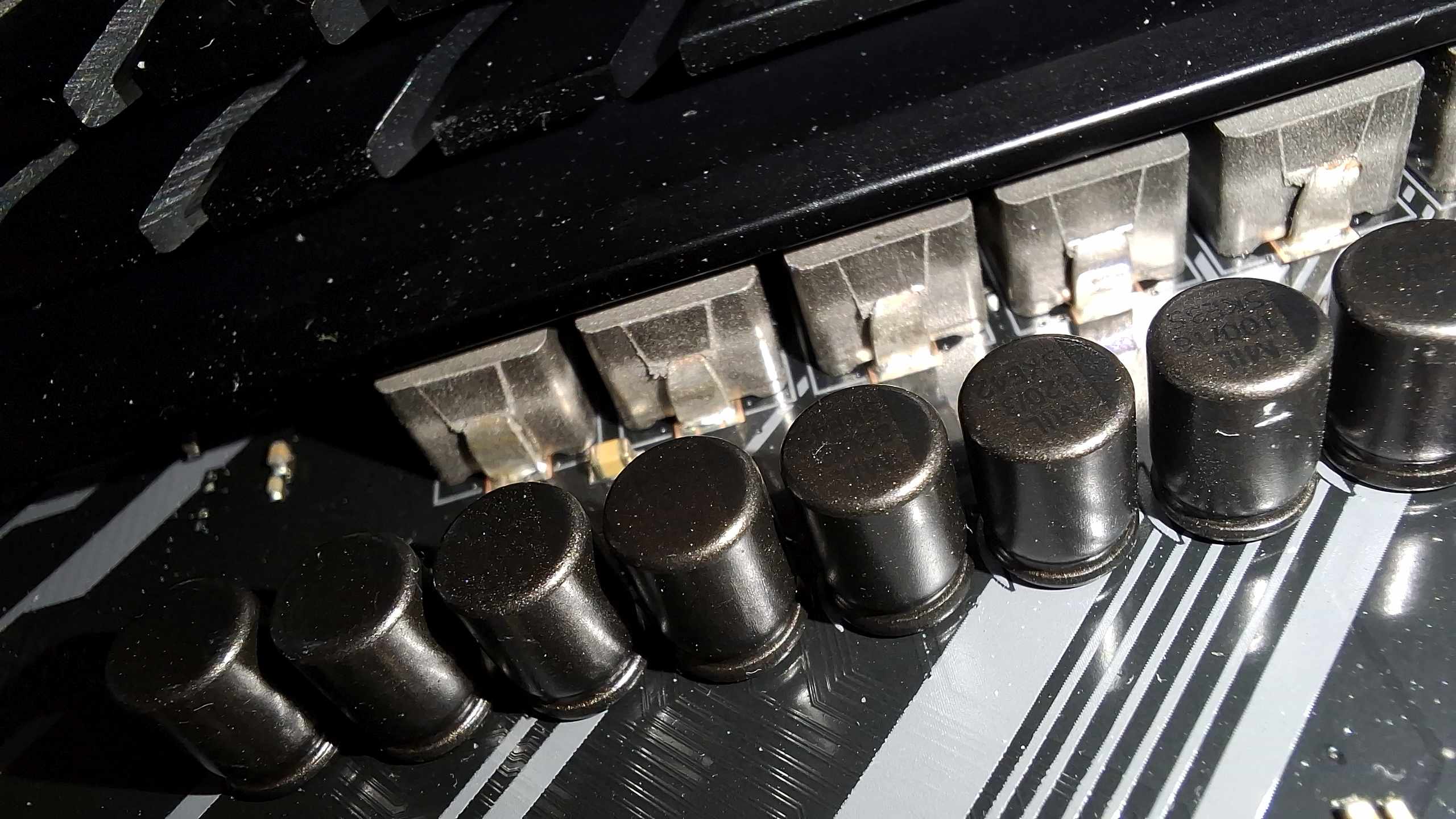 Die Folge: Ein Kratzer auf einem der größeren Kondensatoren neben dem Sockel - wohl durch das wiederholte Reiben einer scharfen Kühlrippe an dem Bauteil.