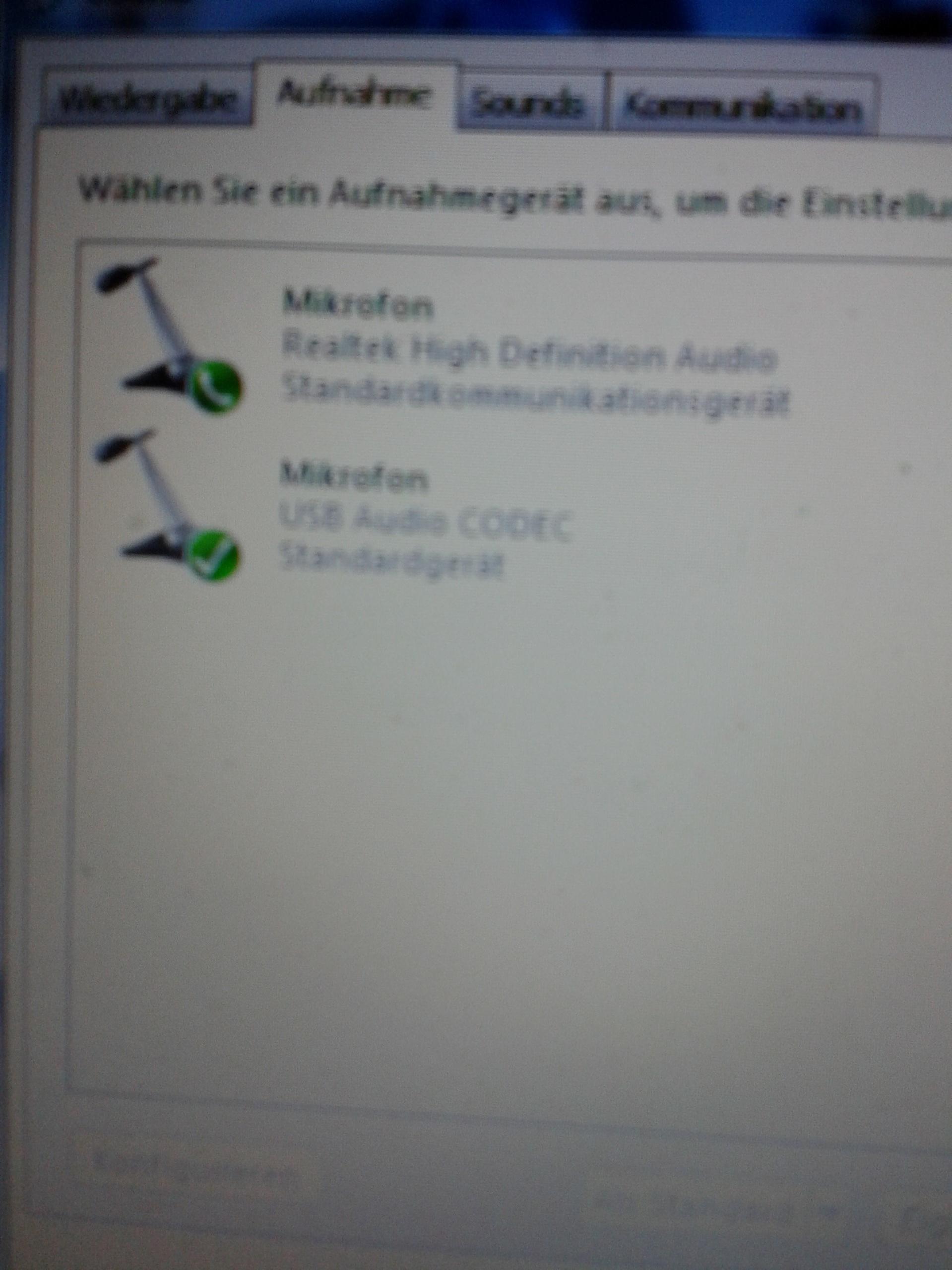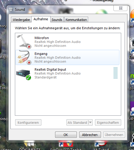 Unter Windows Aufnahmegeräte muss der Mikrofoneingang auf Line-In stehen.