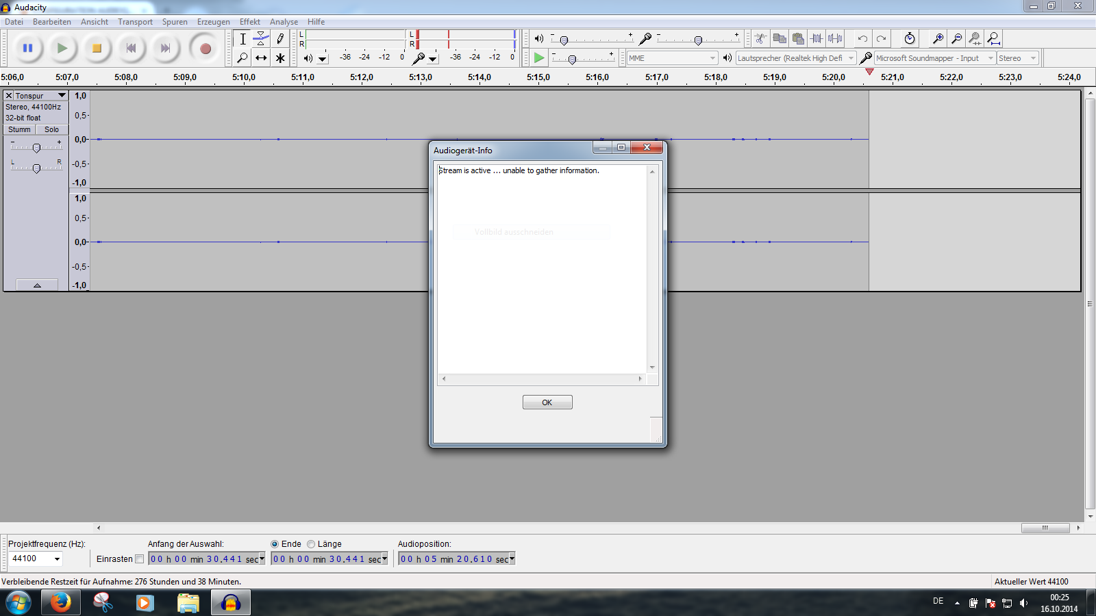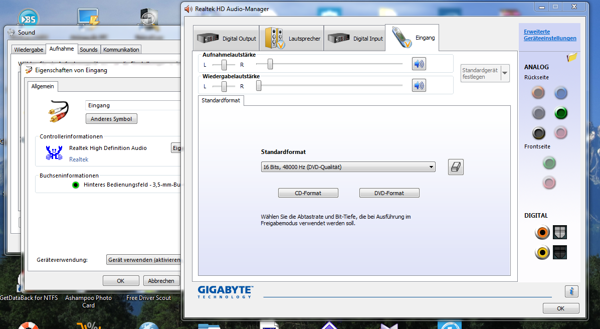 Stelle auch bitte in Audacity auf dem Gigabyte Mainboard den Eingang von Mikrofon auf Line-in.