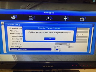 Dafür gibt es einen Menüpunkt unter dem man das konfigurieren kann. Dort erhalte ich nach dem versenden einer Test E-Mail eine Fehlermeldung: "Fehler: DNS konnte nicht aufgelöst werden"