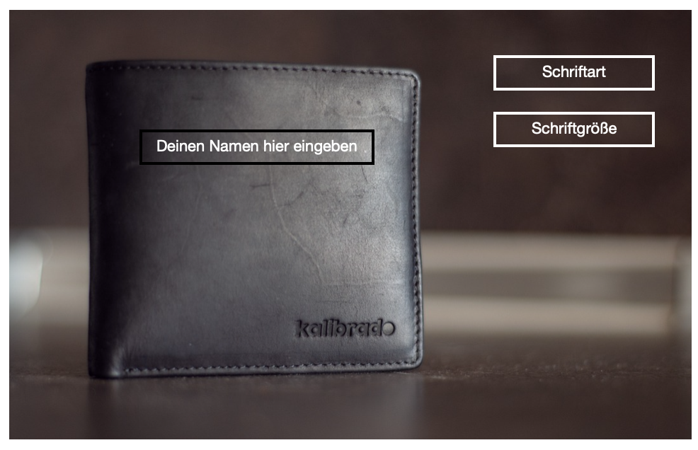 für einen Kunden müsste ich einen Konfigurator in einem Onlineshop bauen. Es geht darum, Geldbörsen zu beschriften.