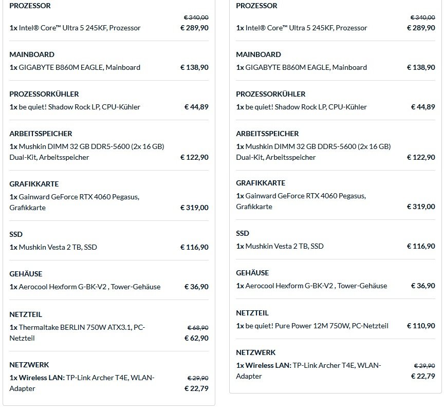 In Verbindung mit Sockel 1851 Mainboards, ich hab zwar natürlich nicht alle durchprobiert aber schon verschiedene von Gigabyte und MSI, lässt der Konfigurator diese Netzteile aber nicht zu.