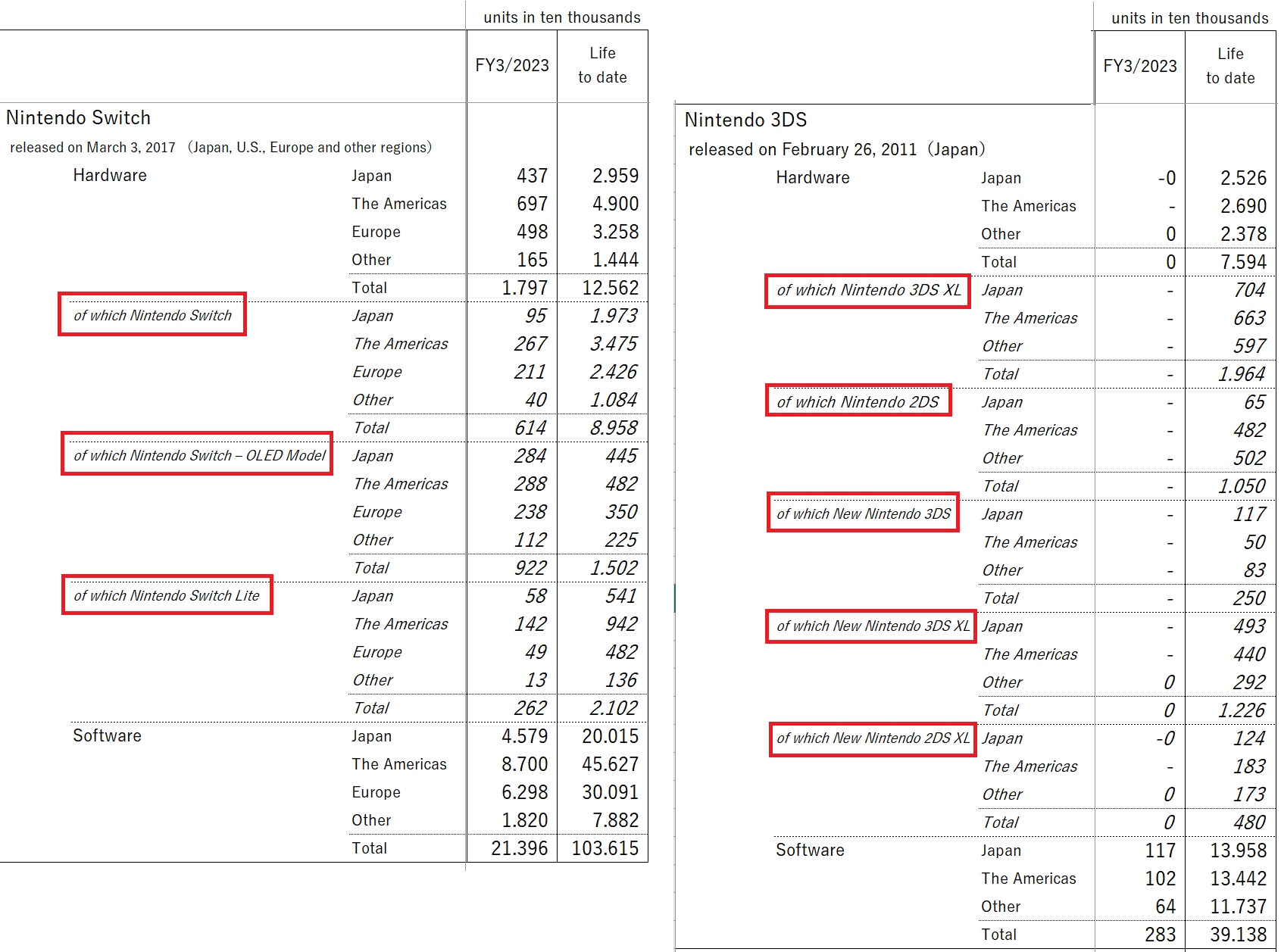 Nur Nintendo ist vorbildlich transparent, wie sich die einzelnen Modelle verkaufen: