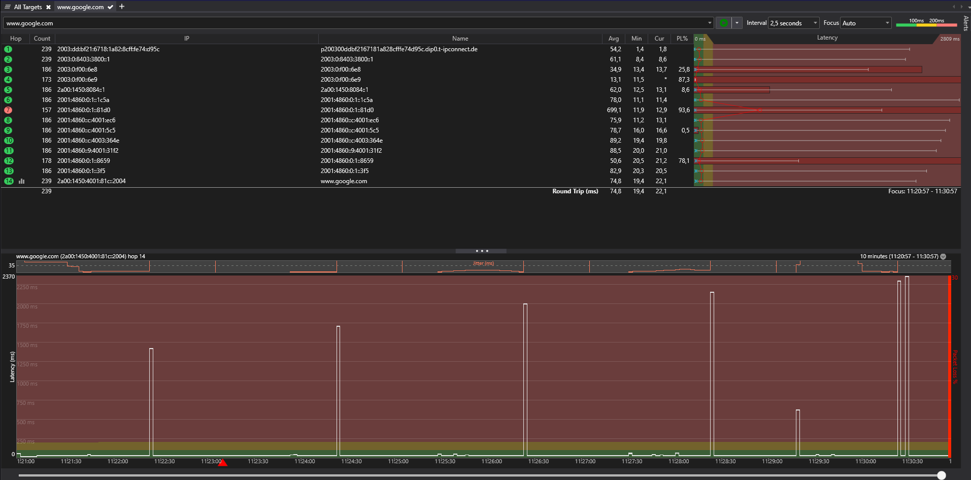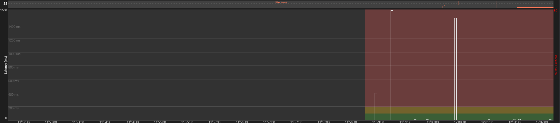 Ich habe seit geraumer Zeit (3+ Monate) das Problem, dass Ich in recht konstante Abständen immer wieder extreme (2500ms+) Ping Spikes inkl. Packetloss habe. Diese halten in der Regel ca. 1-2s an, selten auch mal 10s+.