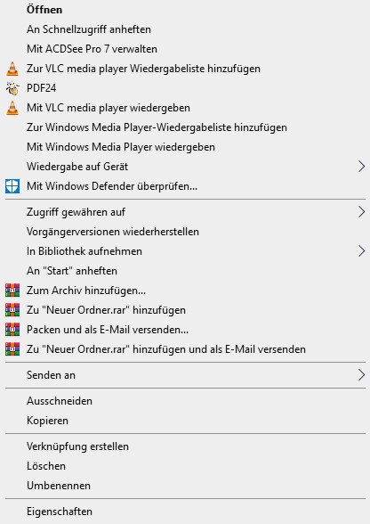Nun wird mir bei einem Rechtsklick auf eine beliebige Datei für 4-5 Sekunden das Win10-Ladesymbol angezeigt (ein blauer sich drehender Kreis) und erst dann öffnet sich das Kontextmenü.