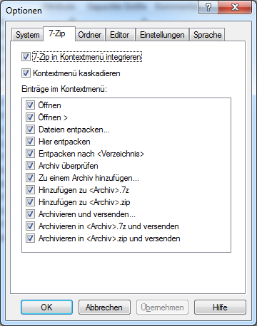 Gibt es eine Lösung die Packer (zumindest 7Zip da ich nur eine alten WinZip 8.1 habe…) da irgendwie wieder zum Dienst zu verpflichten? Auf die proprietäre Zip-Funktion verzichte ich dankend.