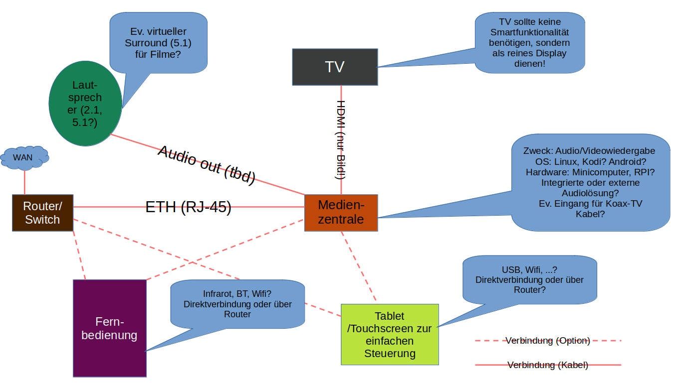 Ein zentrales Gerät (nennen wir es Medienzentrale) welches die ganzen Komponenten verbindet.