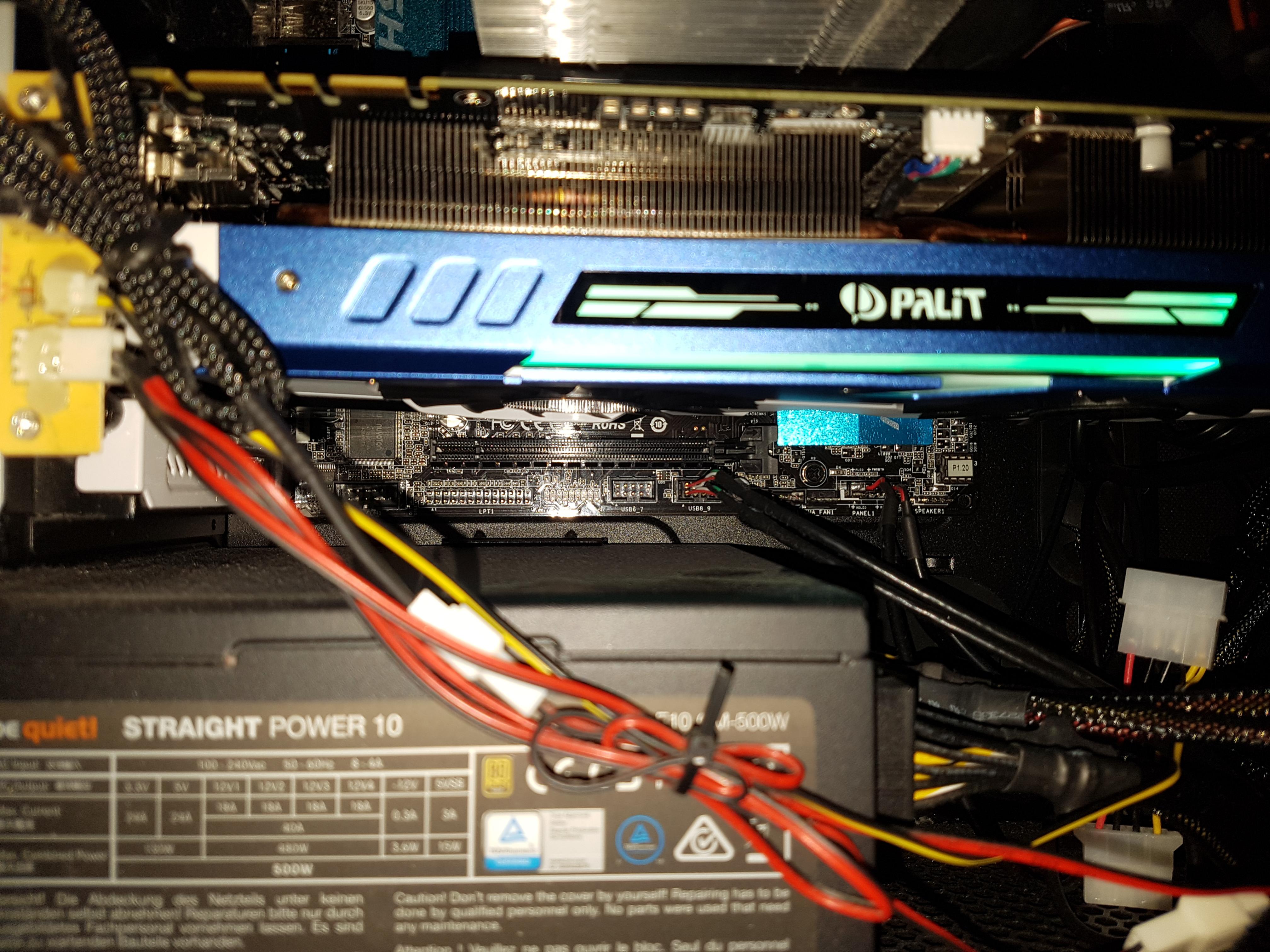 Die Grafikkarte ist ziemlich groß und breit, deshalb weiß ich nicht ob eine Soundkarte dazwischen noch Platz findet. (Bild im Anhang)