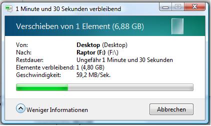 Es handelt sich um eine recht große Datei die von Platte A zu Platte B kopiert wird.