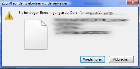 Hast du schon mal probiert die Datei auf eine andere Partition zu kopieren und dann halt erst in den richtigen Ordner zu kopieren? Ist zwar bisschen mehr arbeit. Prüfe sonst doch einfach mal ob du voll berechtigt bist unter Vista.