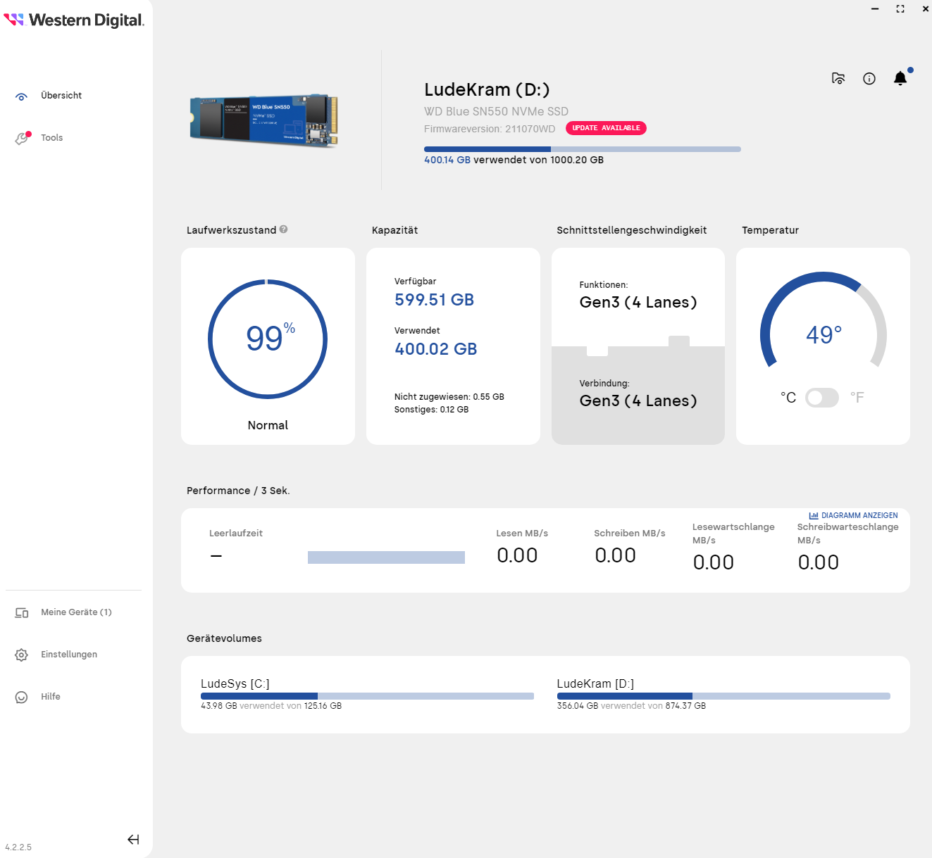 Weder Start noch Ziel HDD/SSD sind annähernd voll