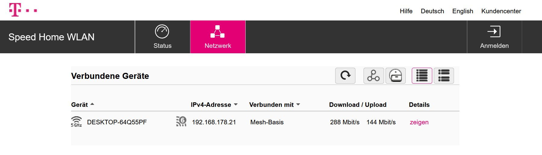 eingerichtet, weil Ihr Speedport ‚Mesh‘