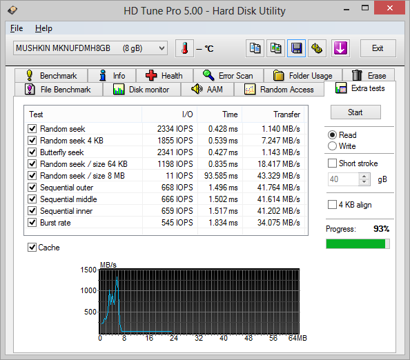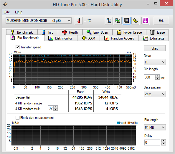 wollte blos net durchlaufen lassen beim AS SSD, aber was mich total freut ist die super Leistung im write, daran erkennt man einen richtig guten stick und die rate ist für nen 8GB USB2 stick wirklich super....siehe auch HD Tune Pro5.0