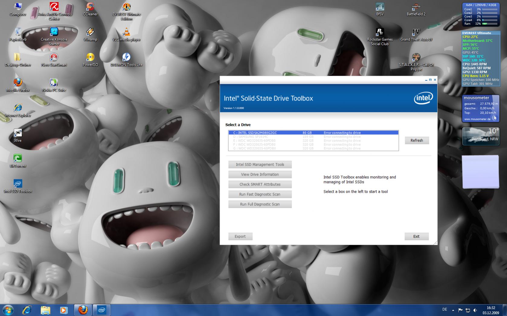 Ich habe ein Probleme mit der Intel SSD Toolbox. Wenn ich auf die SSD zugreifen möchte gibt er mir, wie auf dem Screen zu sehen, "Error connecting to drive" an.