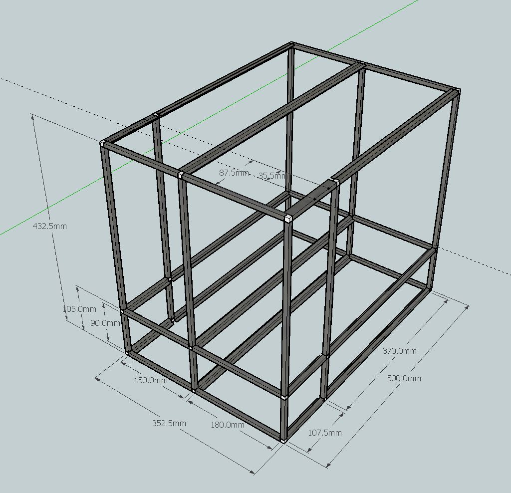 Im Sommer 2010 habe ich mit Sketchup ersten Skizzen für mein neues Gehäuse Projekt erstellt. Letztlich hatte ich die Gelegenheit ein Lian Li 343B günstig zu kaufen - ich habe mich dagegen entschieden, da ich weiss, dass ich mehr Spass daran haben werde selber mein Gehäuse zu erstellen als irgendeines zu kaufen wo es mich danach reut Löcher und andere Veränderungen daran durchzuführen.