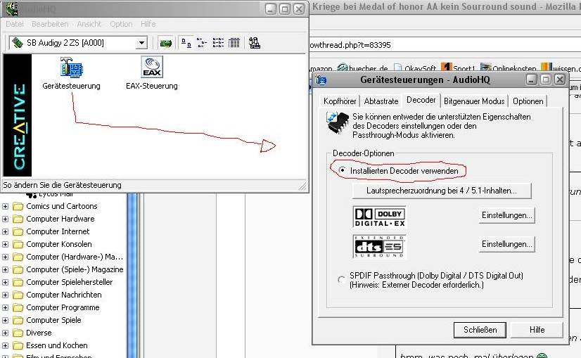 4) Schau mal, ob auch überall die Audigy als Standardgerät drin ist und deaktiviere nötigenfalls den Onboard-sound im BIOS.