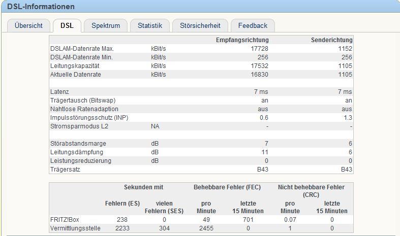 In der Fritz!Box wird mir angezeigt ,dass ich die volle Geschwindigkeit meiner Leitung habe.