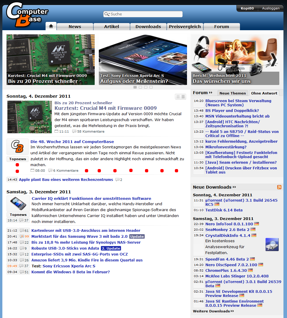 Ganz recht. Wenn man sich die Seite jetzt mal anschaut, die 3 Bilder vor den Artikeln (Weihnachten, M4-Firmware, Xperia Arc) bzw. Berichten tauchen oben nochmal auf, das ist eine überflüssige Wiederholung. Und oben stechen sie auch viel besser hervor.