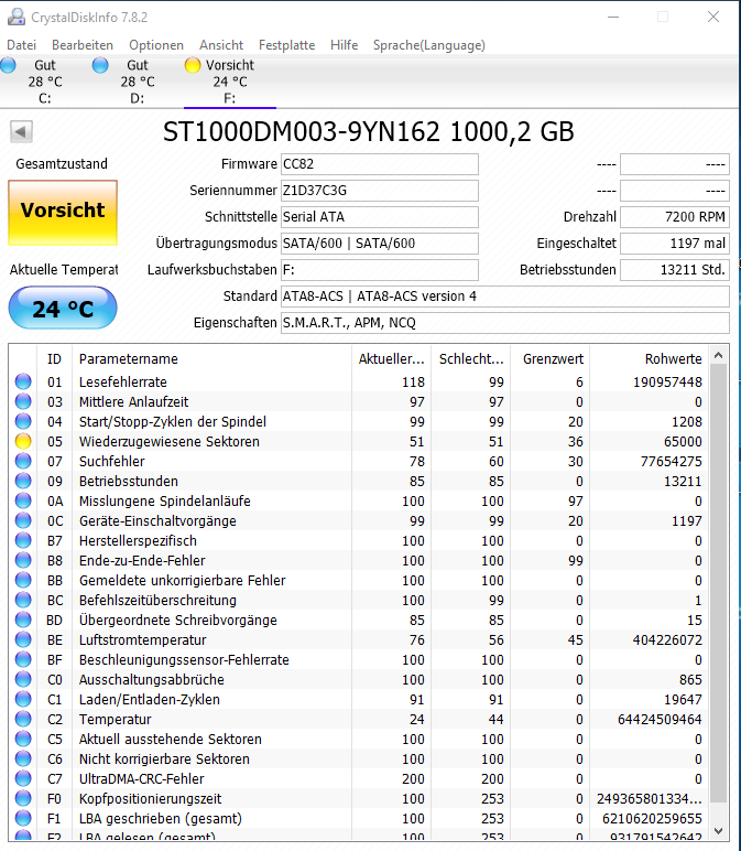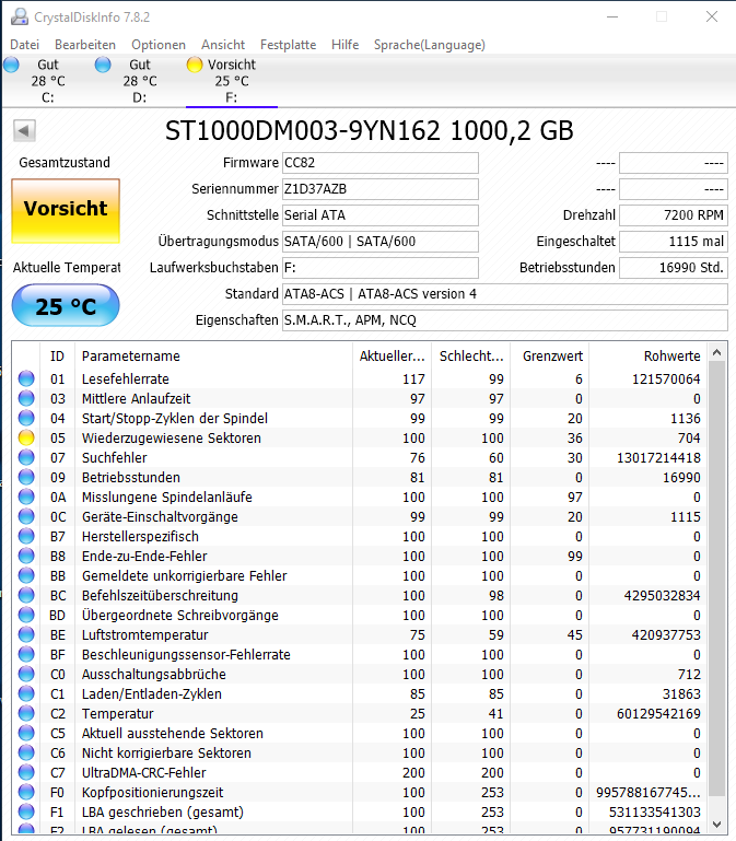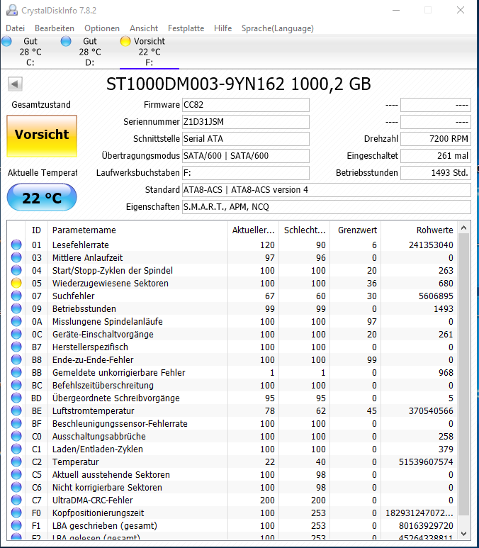 Ich habe heute 5 SEAGATES bekommen und alle haben defekte (wiederzugewiesene) Sektoren. Allerdings steht bei manchen kein klar ersichtlicher Wert (bsp: 2C0, FD88, 2A8). Ich möchte unbedingt eine dieser QUALITÄTSPLATTEN in meinem PC als Massenspeicher haben, also bitte nicht schreiben, dass ich eine andere verwenden soll. Ich möchte die mit den wenigsten für mein System verwenden. Meine Frage lautet also: