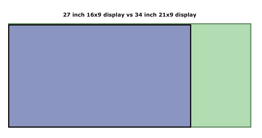 27 Zoll 1440p und 34 Zoll Ultra Wide 1440p zeigen exakt den gleichen Bildausschnitt in gleicher Größe und Auflösung.
