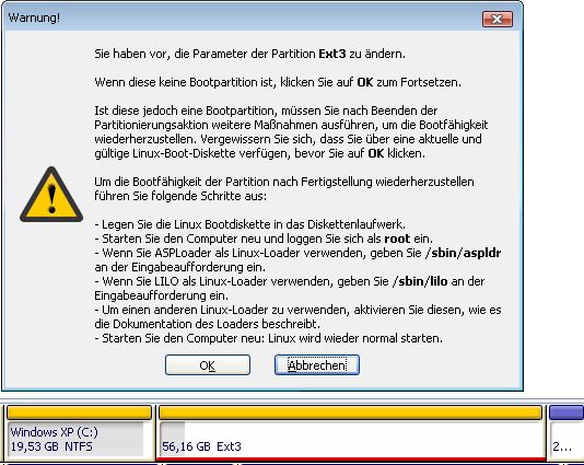 Ich besitze das Partitions Tool Disk Director Suite, hier kommt aber eine Meldung das ev. die Bootpartition nicht mehr bootfähig ist.