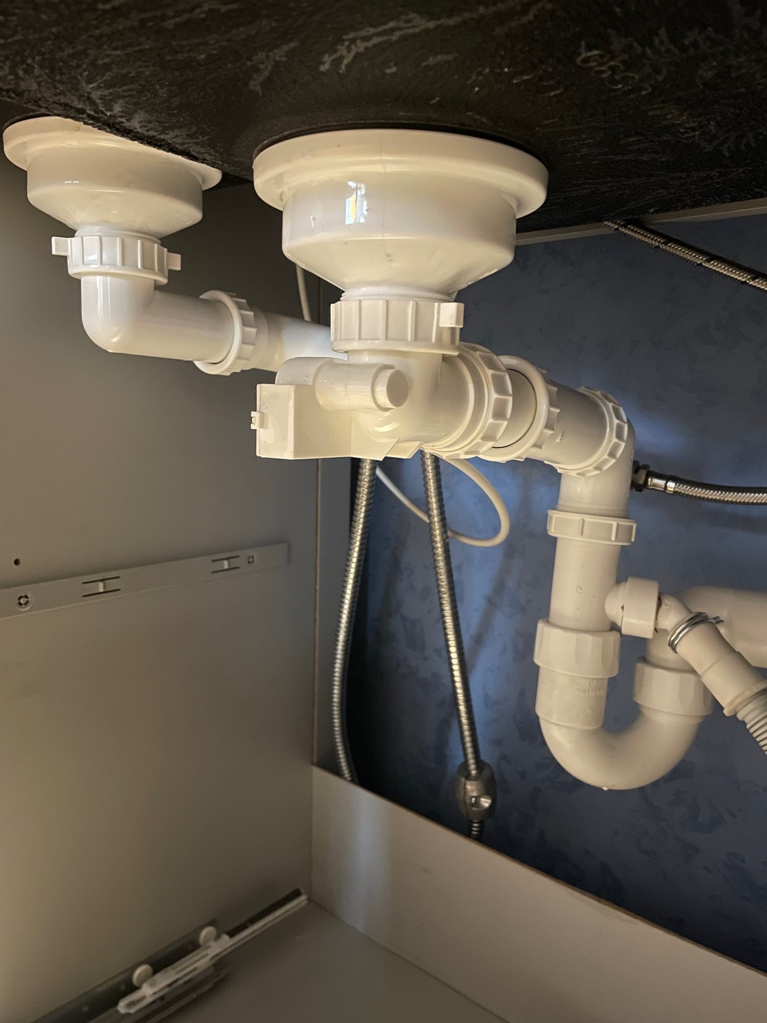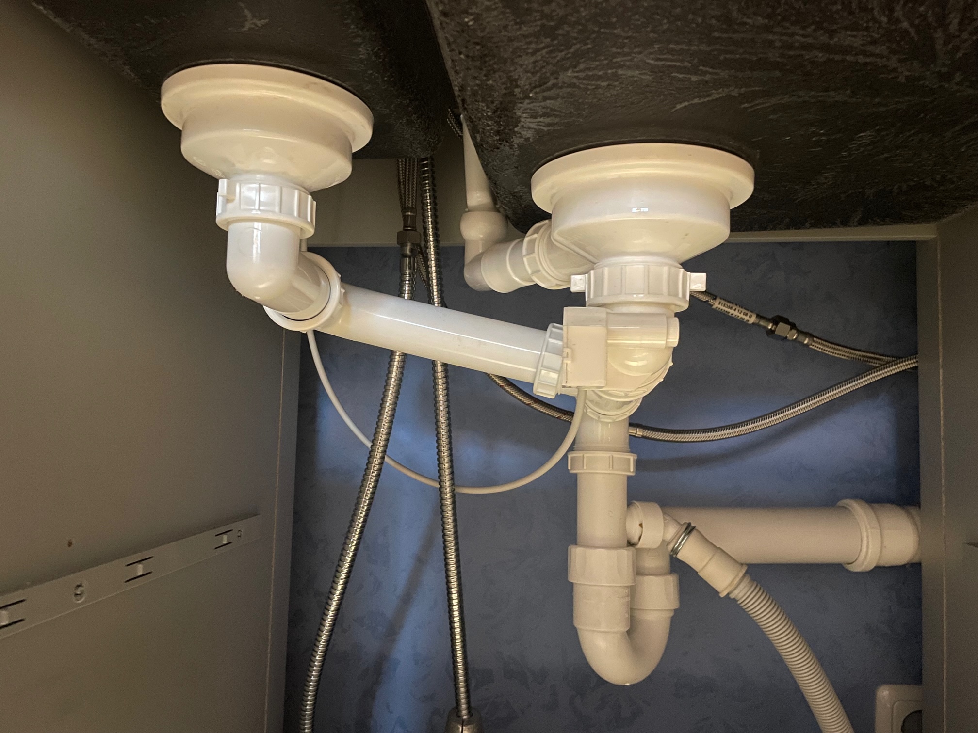 Die vor zwei Jahren vom Vorbesitzer übernommene Einbauküche hat einen Siphon unter der Spüle, der selten plötzlich aufgeht. Dann suppt das ganze Wasser 1:1 unten raus. Ist bei normaler Nutzung der Spüle nervig aber noch tolerierbar. Leider hängt aber auch eine Spülmaschine dran und wenn es dann passieren sollte, könnte der Holzboden sehr leiden.
