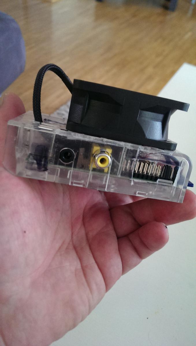 Ich habe einen Passiven aus Kupfer den Minilüfter, den airwave empfohlen hat. Aufgrund der kurzen Kabel nicht an der GPIO sondern hier verbaut. Grund der Überaktung waren die SNES Spiele für den Retropie