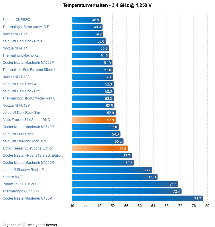Das zeigt vor allem die Qualität der Arctic Lüfter und dass der Kühlkörper für das Volumen eben auch mehr als gut ist.