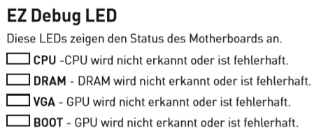 - Taster zum Ein-/Ausschalten vom Gehäuse mit den korrekten Pins auf dem Mainboard verbunden?