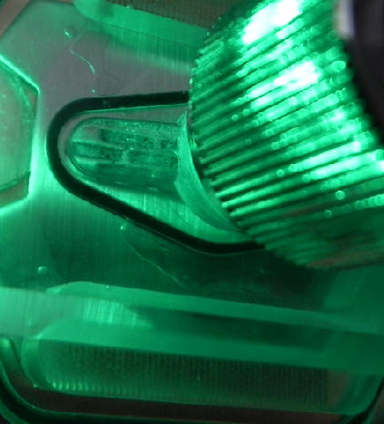 Das die feinen Zulassöffnungen für den HK langsam verstopfen. Wenn das passiert, dann hast Du zwar noch Durchfluß, aber das Kühlmedium wird nicht mehr optimal auf die Kühlerstruktur beschleunigt => verminderte Kühlwirkung.
